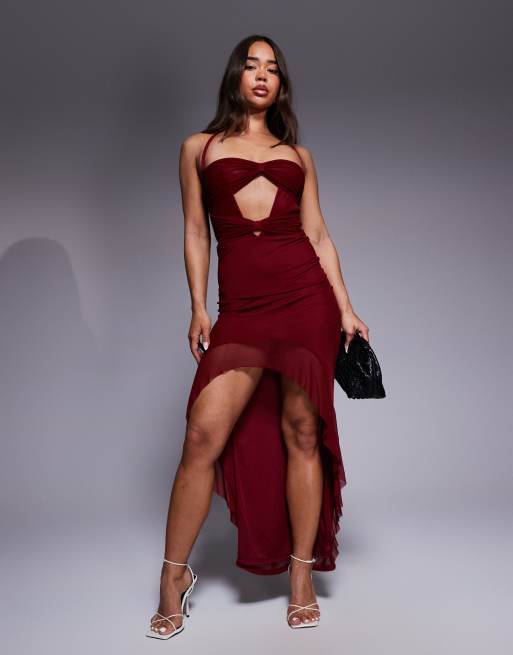 Simmi London Tribeca cherry red halterneck maxi dress in red