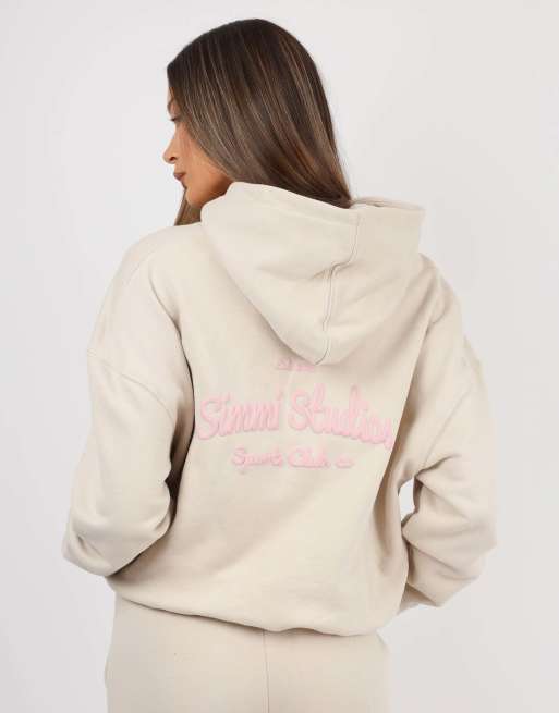 Simmi London X mia khan marilyn printed hoodie in beige