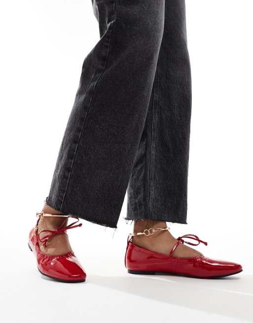 Simmi London Abbie Bow ballet flats with ruch detail and removable anklet in red
