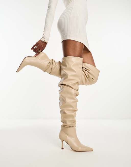 Simmi London Beck ruched knee boots in light beige
