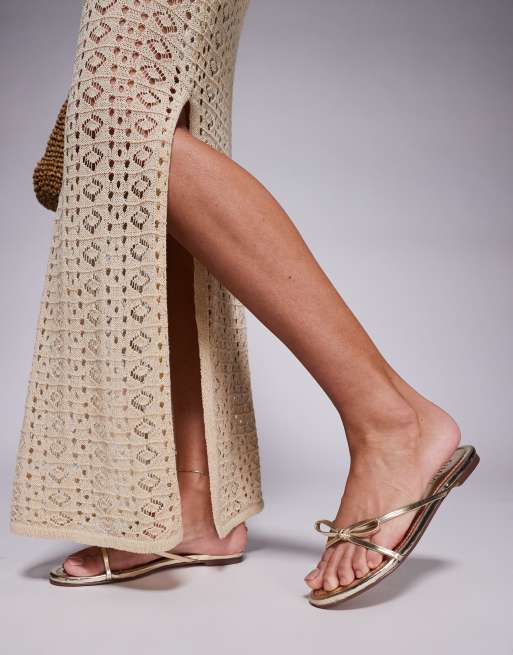 Simmi London Char bow detail flat sandals in gold