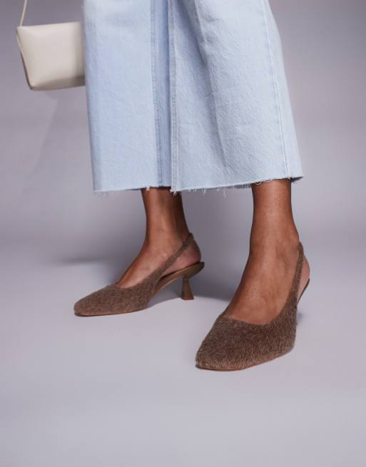 Simmi London Dorothy slingback heeled shoes in dark beige faux pony