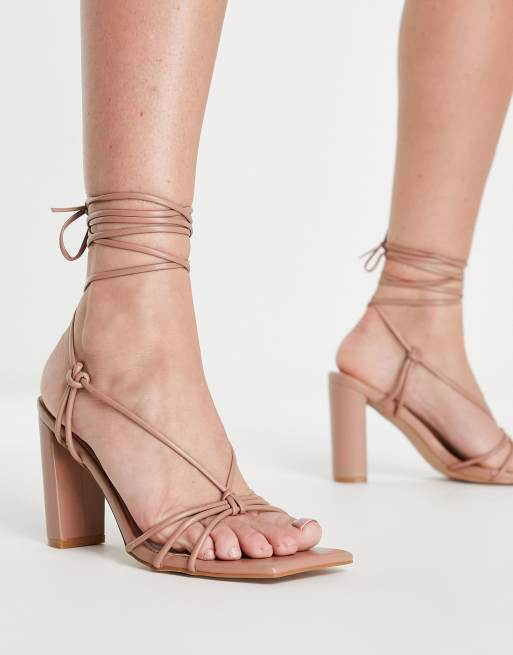 Simmi London Heidi heeled sandals with ankle tie in camel
