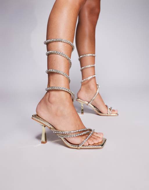 SIMMI Shoes Freesia faux snake print spiral mid heels in gold