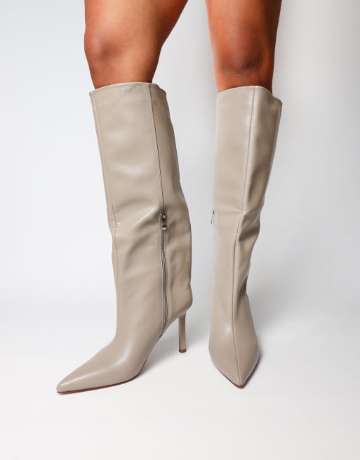 SIMMI Shoes Miguel knee high heeled boots in mushroom
