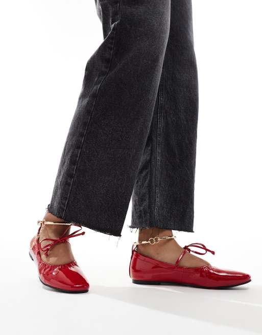 Simmi London Wide Fit Abbie Bow ballet flats with ruch detail and removable anklet in red