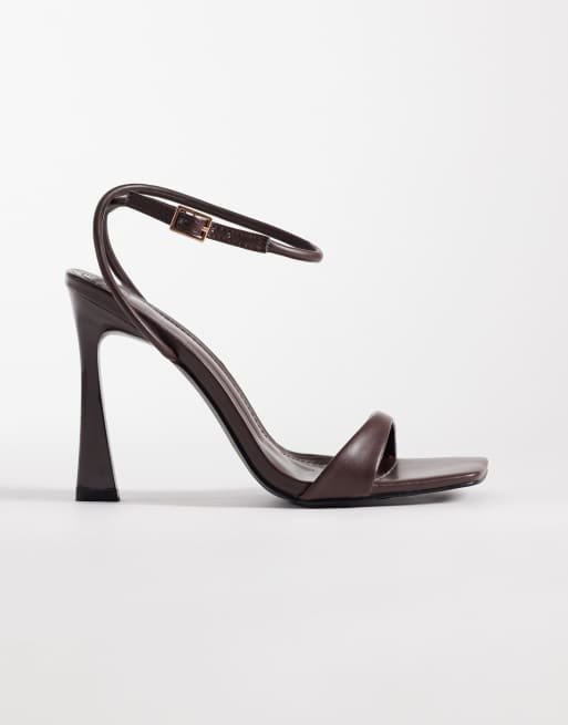 Simmi London Wide Fit Kareena barely there heeled sandals in chocolate