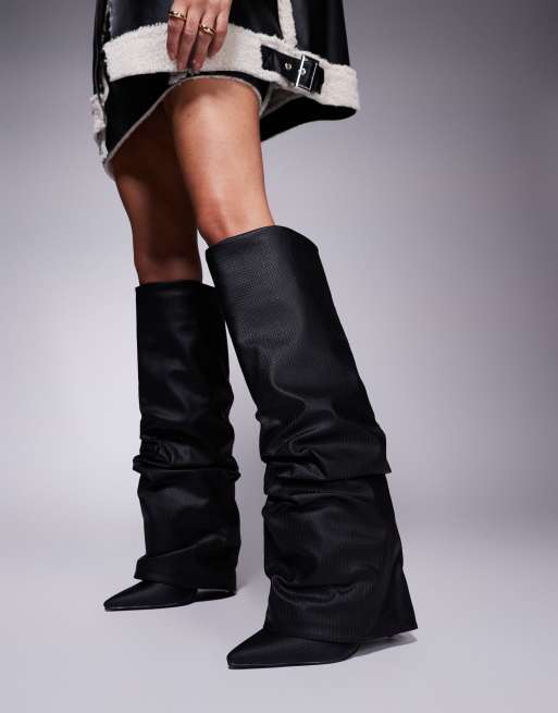 Simmi London Wide Fit Leif Foldover rouched knee boot in Black