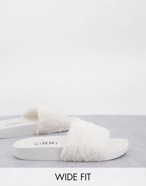 Simmi London Wide Fit Mahi summer fluff sliders in off white