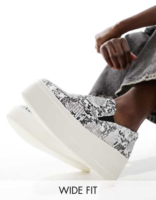 Simply Be Wide Fit flatform slip on trainers in snake print