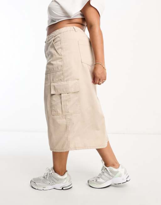 Simply Be cargo utility midi skirt in beige