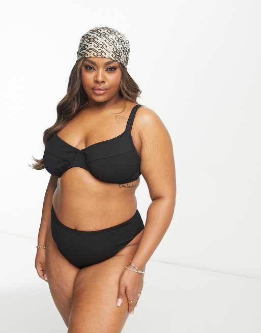 Simply Be crinkle underwired bikini top in black