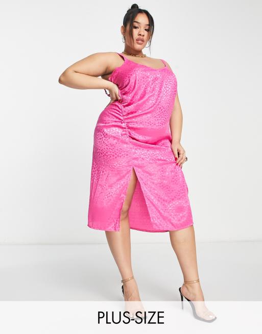 Simply Be ruched side slip dress in pink
