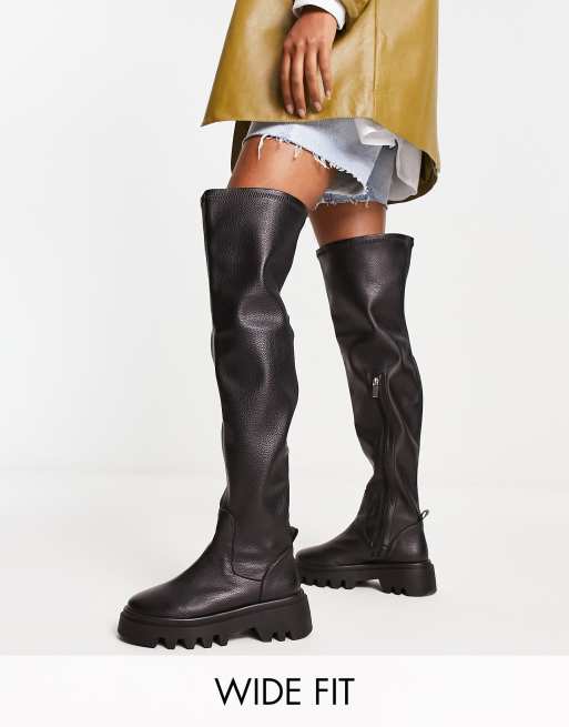 Simply Be Wide Fit over the knee flat boot with cleated sole in black