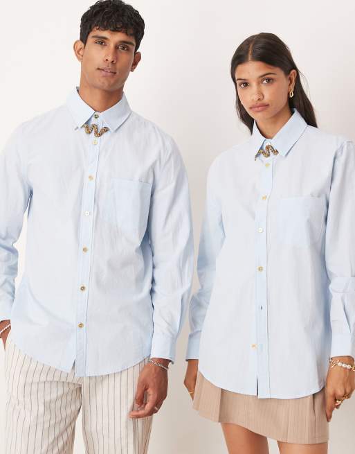 Sister Jane Unisex shirt with snake brooch in powder blue