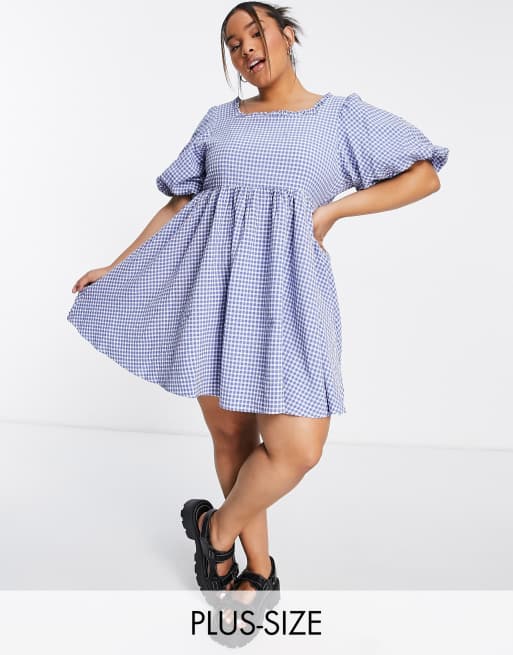 Sister Jane Plus tie back mini smock dress in blue gingham