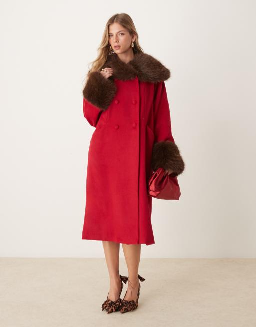 Dream Sister Jane double breasted faux fur coat in bordeaux red