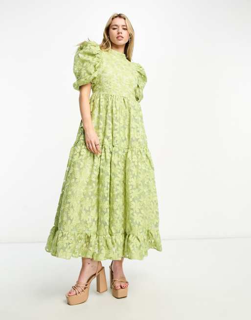 Dream Sister Jane floral embroidered maxi dress in sage green