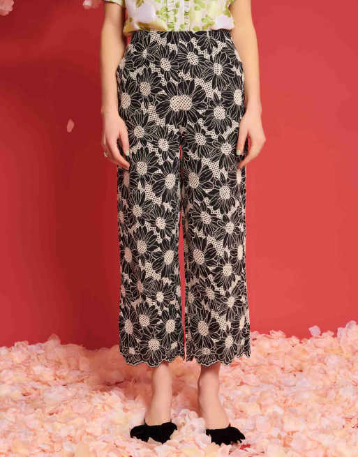 Dream Sister Jane flower embroidered trouser co-ord in black