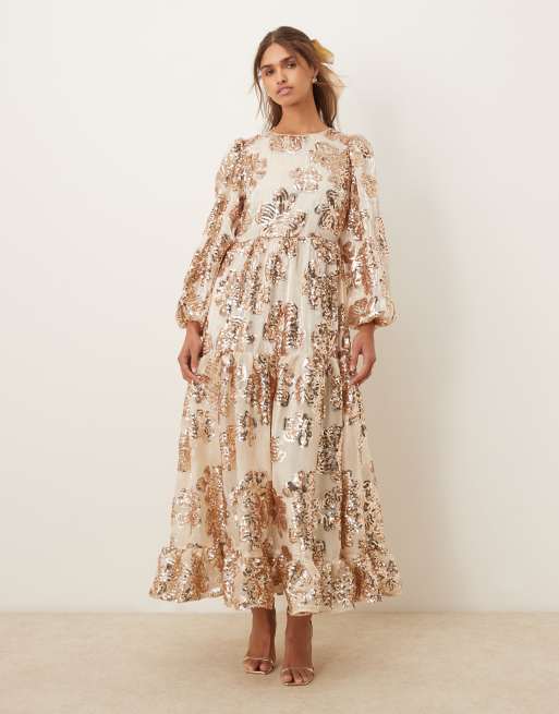 Dream Sister Jane oversized floral embellished maxi dress in gold
