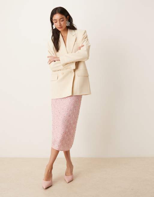 Dream Sister Jane Pink Parade embellished midi skirt in light pink