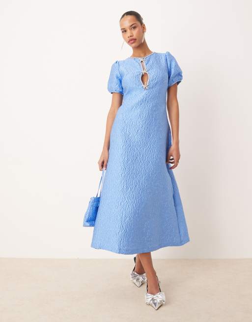 Dream Sister Jane seashell embellished jacquard midi dress co-ord in cornflower blue