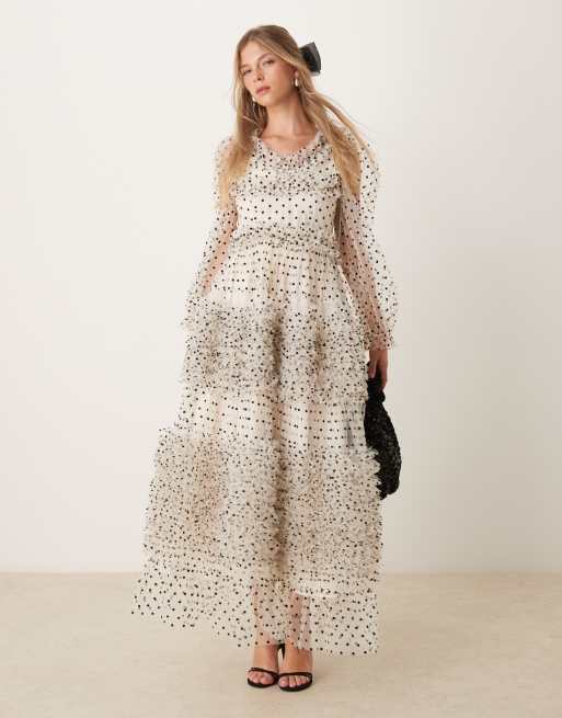 Dream Sister Jane tulle maxi dress in cream polka dot