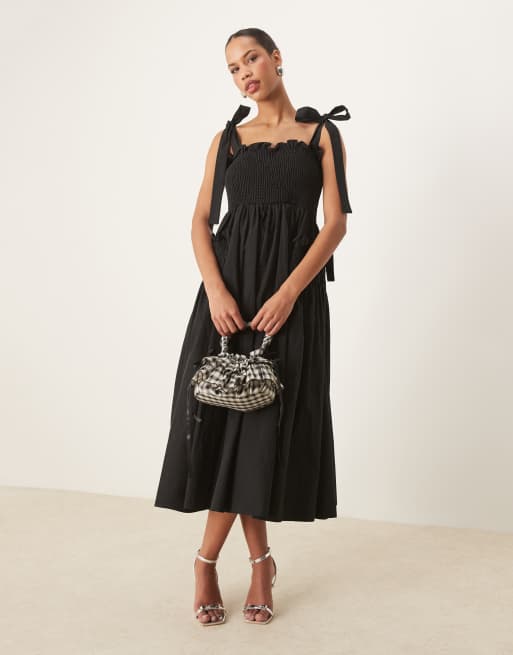 Sister Jane bow shoulder midi dress in black