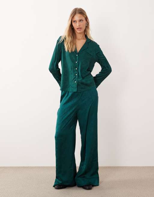 Sister Jane Dita satin pyjama shirt trouser and eye mask co-ord in emerald bow print