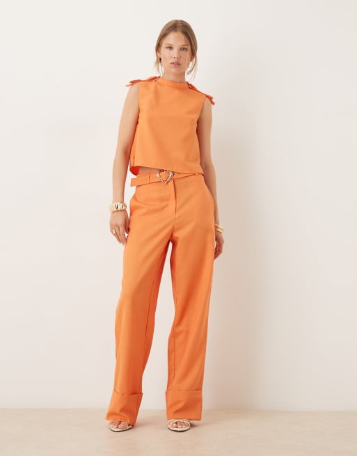 Sister Jane heart belt high waisted trousers in orange