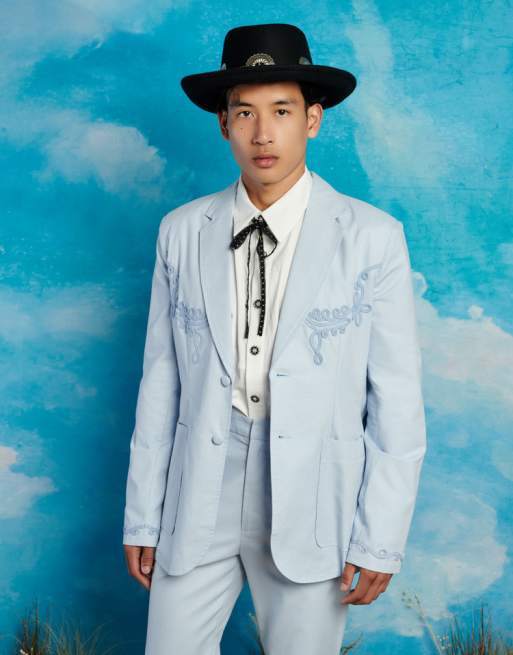 Sister Jane Unisex cord embroidered suit jacket co-ord in blue