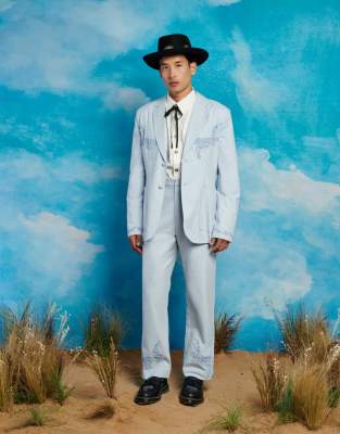 Sister Jane Unisex cord embroidered suit trouser co-ord in blue