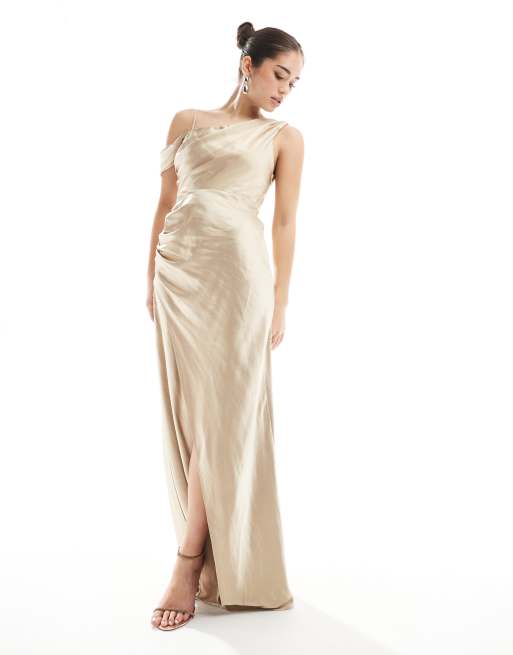 Six Stories Bridesmaid asymmetric cowl maxi dress in gold