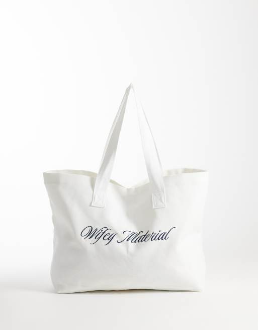Six Stories 'Wifey Material' tote bag in white