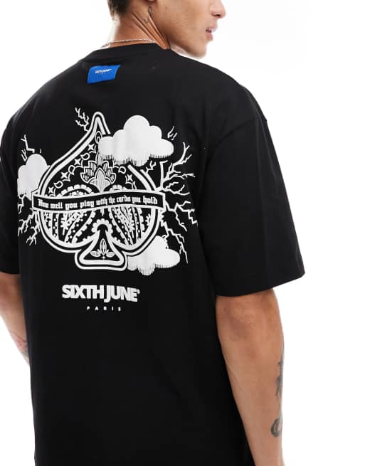 Sixth June printed back motif oversized t-shirt in black