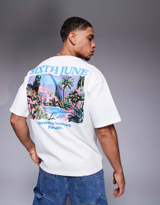 Sixth June serenity motif back print t-shirt in white