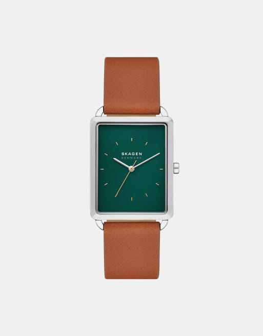 - With an aesthetic inspired by their Danish heritage, Skagen watches are the epitome of stylish simplicity. Combining sophisticated design and functionality, Skagen distinctive collection of authentic, high-quality products represent a passion for intricate craftsmanship. Look for bold shapes with titanium cases, leather and delicate chain link straps and the signature Skagen steel mesh band across their range of timepieces.