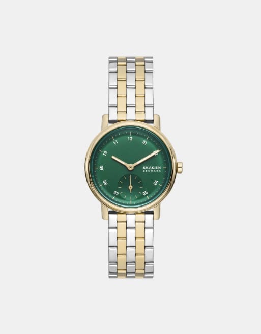 - With an aesthetic inspired by their Danish heritage, Skagen watches are the epitome of stylish simplicity. Combining sophisticated design and functionality, Skagen distinctive collection of authentic, high-quality products represent a passion for intricate craftsmanship. Look for bold shapes with titanium cases, leather and delicate chain link straps and the signature Skagen steel mesh band across their range of timepieces.