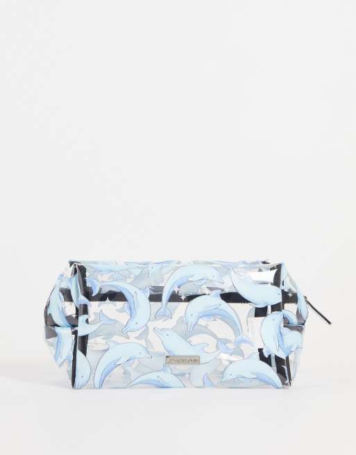Skinnydip clear make up bag with blue dolphin print