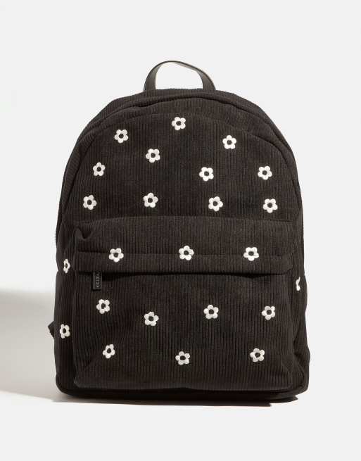 Skinnydip Ditsy flower embroidered backpack in black