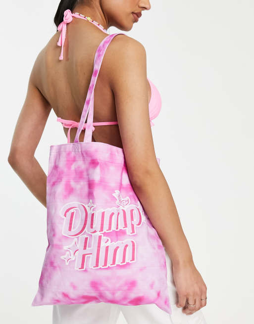 Skinnydip Dump Him slogan tote bag in pink tie dye