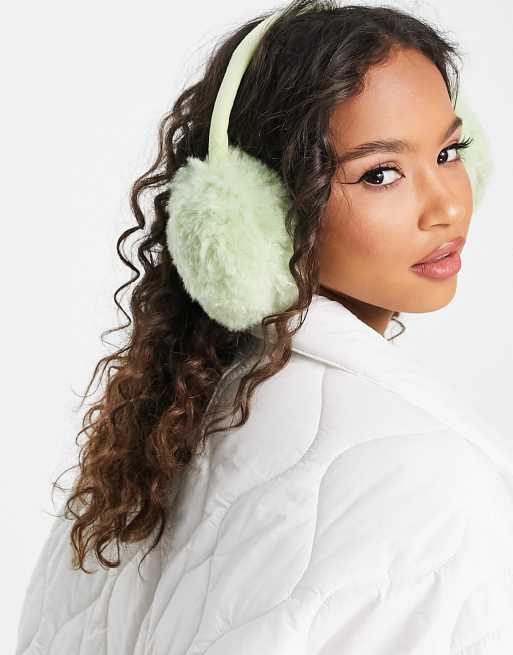 Skinnydip ear muffs in sage green fluffy borg
