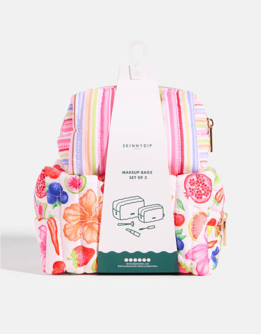 Skinnydip Exotic flower quilted makeup bag set in pink