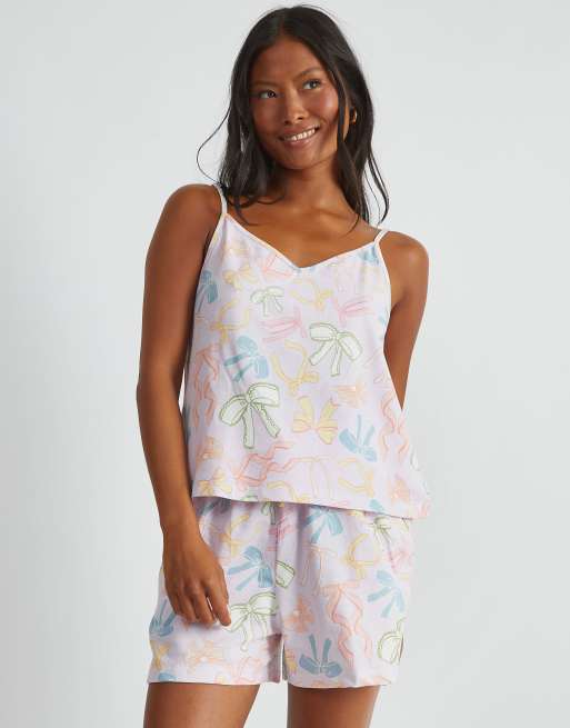 Skinnydip london bow print cami & short pyjama set in blue