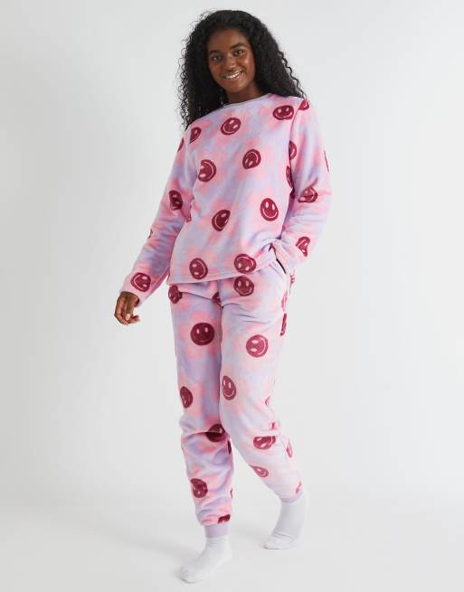 Skinnydip london happy flower lilac twosie fleece pyjama set in red