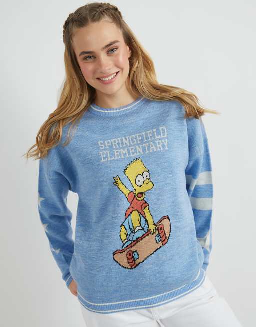 Skinnydip london the simpsons bart & lisa varsity knitted jumper in white