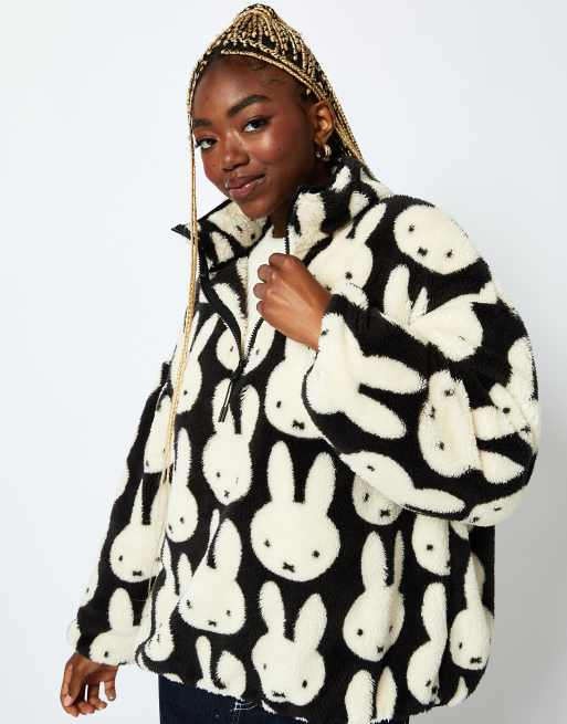 Skinnydip Miffy x Skinnydip Repeat Print Longline Fleece in Black and White