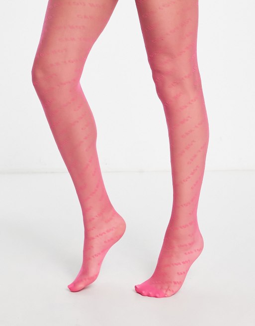 Skinnydip sheer pink tights with 'can you not' wavy slogan