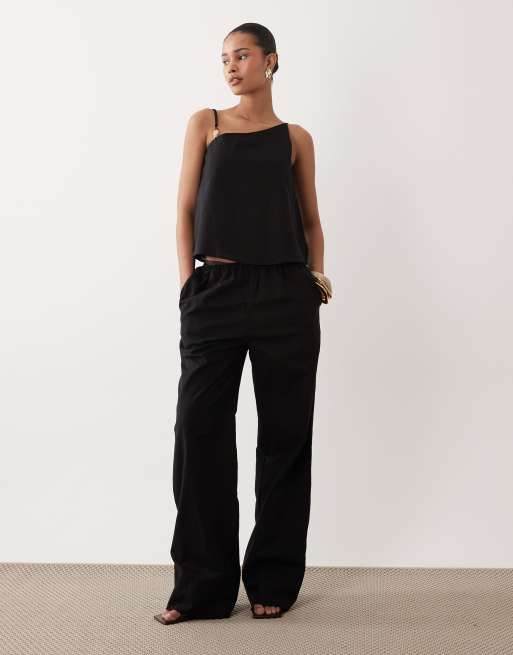 SNDYS linen blend elasticated waist wide leg trousers co-ord in black