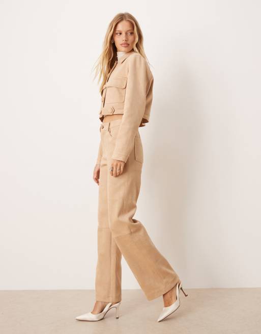 Soho Wardrobe high waisted faux suede trousers in beige